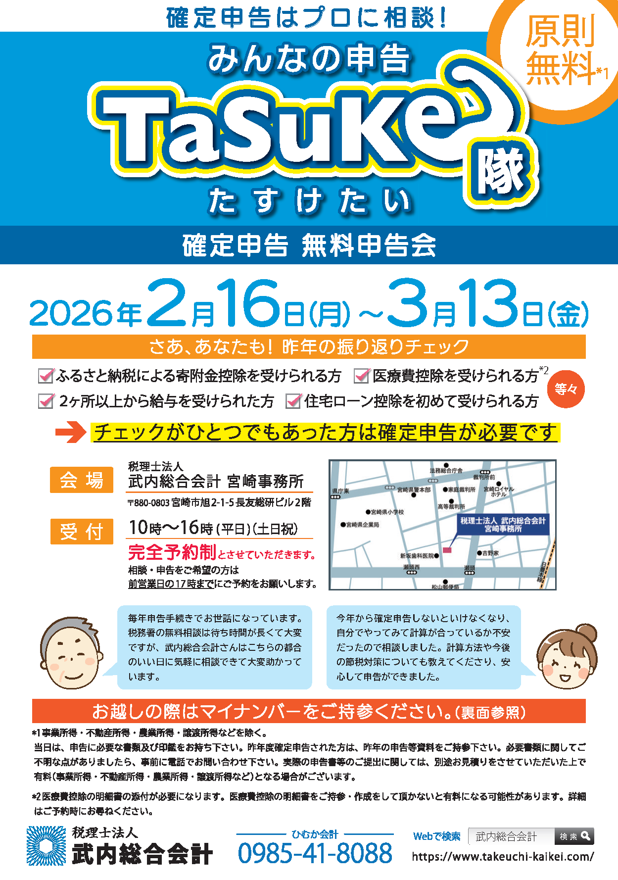 地域貢献の一環として「みんなの申告TaSuKe隊(助けたい)」と銘打って